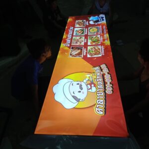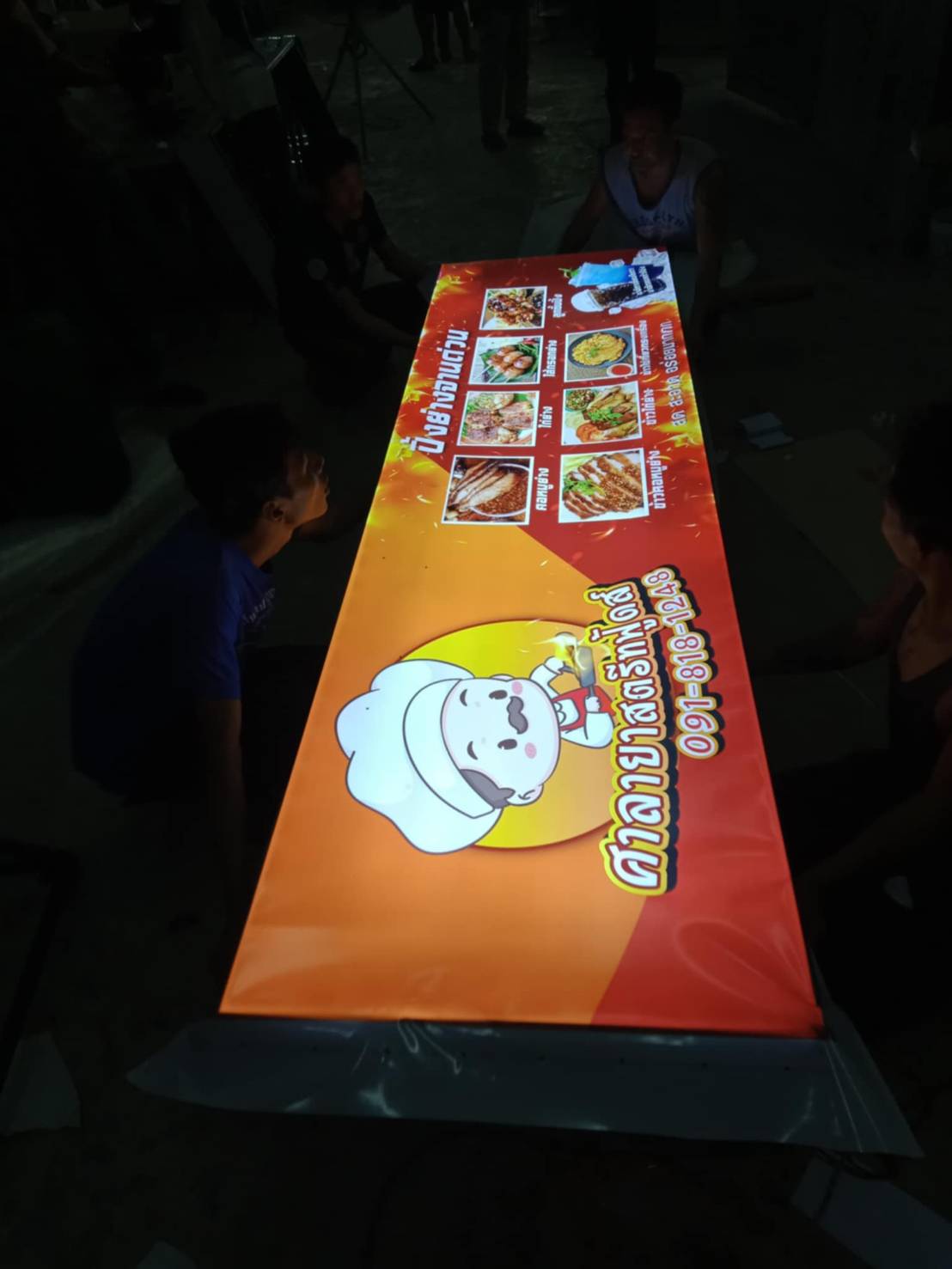 ป้ายกล่องไฟไวนิลร้านศาลายาสตรีทฟู้ดส์ พิมพ์ UV สีสด คมชัด ดีไซน์ไฟลุกโดดเด่น ดึงดูดสายตาลูกค้าในยามค่ำคืน ผลิตโดยร้านป้ายติวานนท์